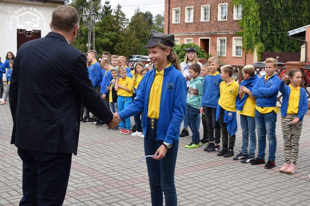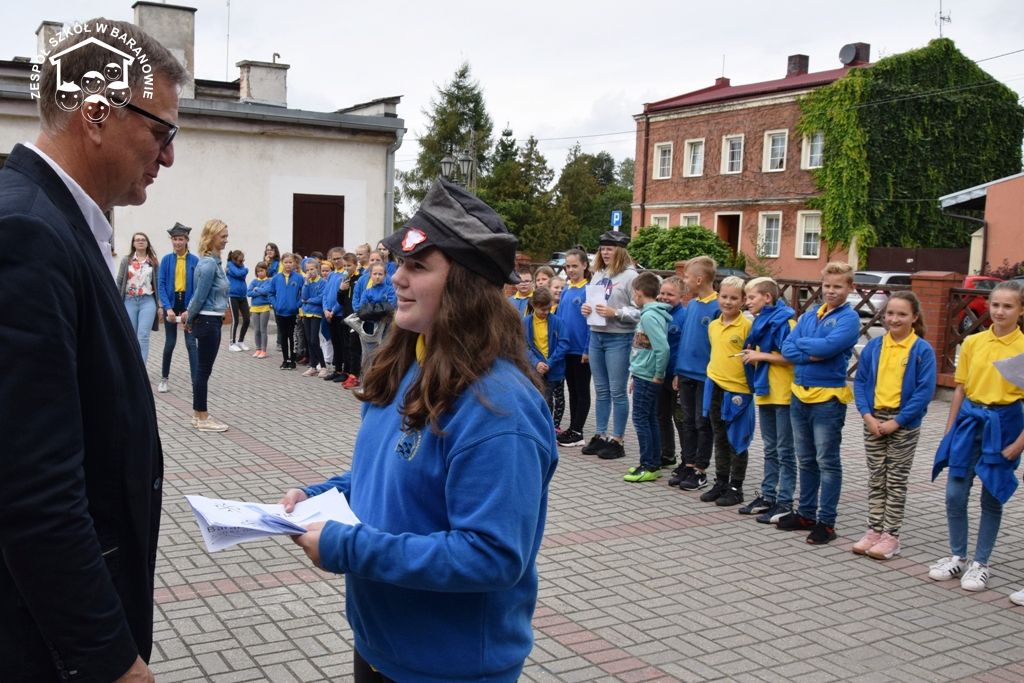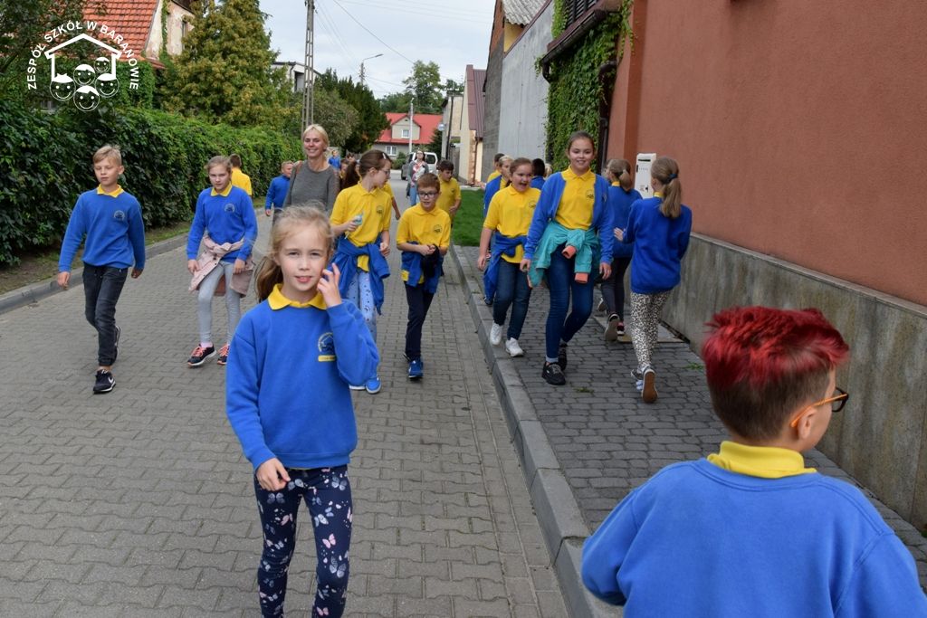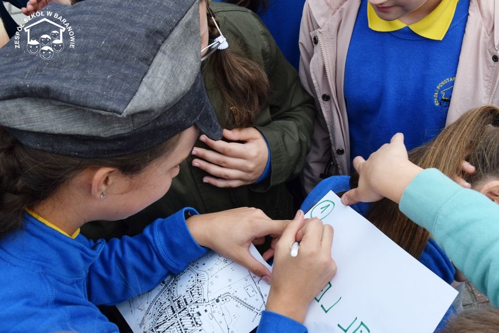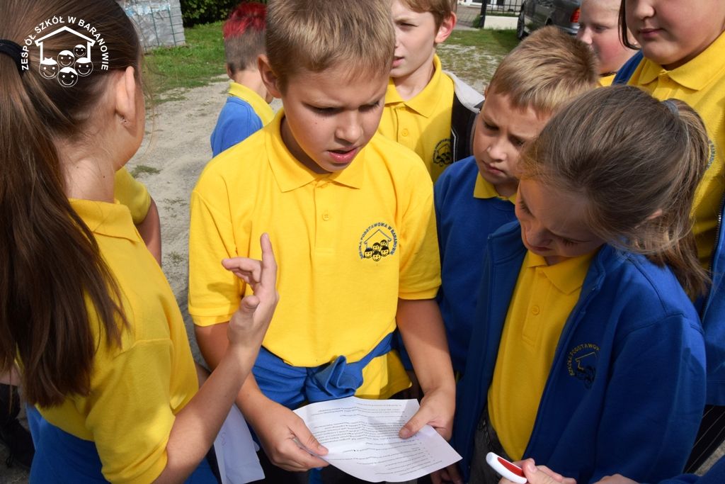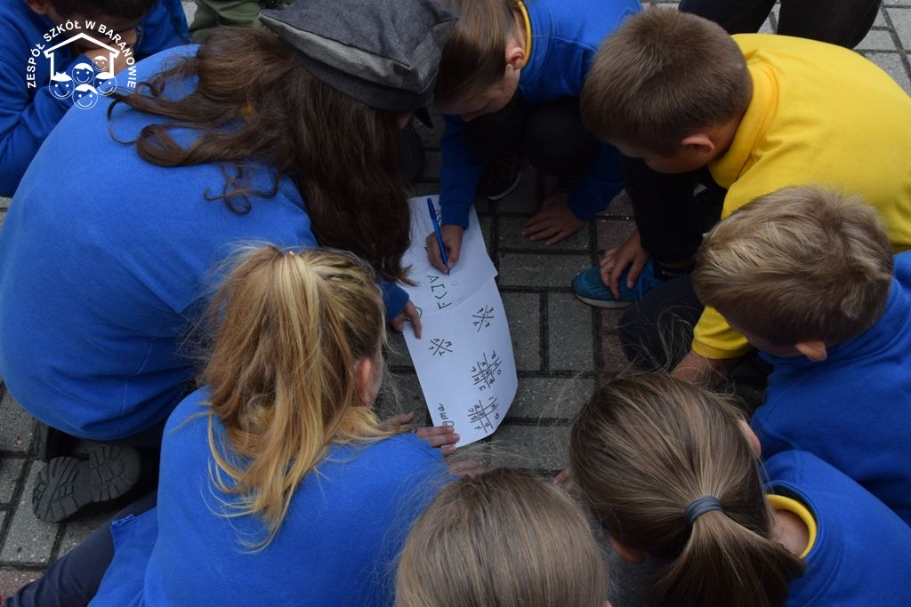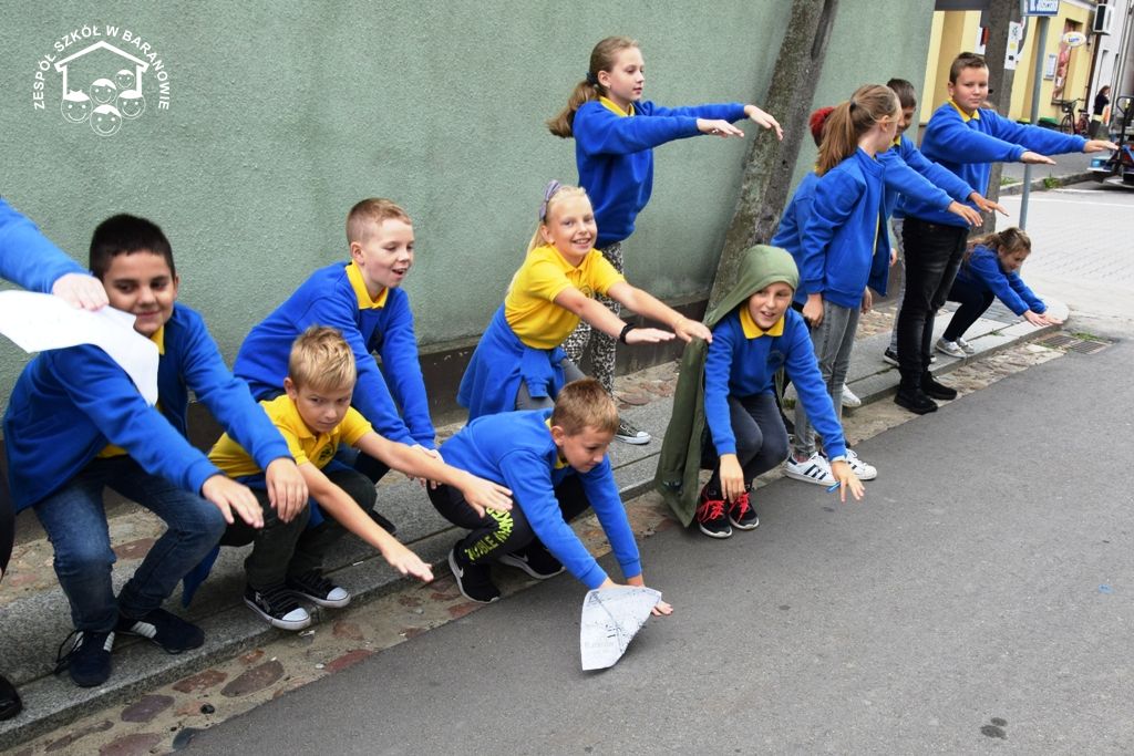 Blisko 80 uczniów klas 4 - 6 baranowskiej podstawówki 16 września br. wzięło udział w grze terenowej "Śladami Powstania Wielkopolskiego". Formułę terenowej zabawy dla uczniów przy użyciu planu miejscowości przygotowali nauczyciele: S. Prygiel, T. Modrzyński, J. Klyta. Uczestnicy podchodów zostali podzieleni na cztery grupy: Czerwony Grom, Czarny Piorun, Biała Armia i Rudy 103. Wraz z opiekunami: J. Obsadą, S. Prygiel, M. Woźnicą, T. Modrzyńskim i J. Klytą wyruszyli w teren. Grupy poruszały się trasą, wytyczoną na mapie. Celem gry było odszukanie punktów zaznaczonych na mapie Baranowa i wykonanie przypisane do nich zadań. W trakcie podchodów niezbędna okazała się wiedza historyczna dotycząca faktów Powstania Wielkopolskiego. Wiele emocji wywołało odgadnięcie zaszyfrowanego hasła - nazwy drużyny. Gra wymagała dobrej orientacji w terenie, posługiwania się mapą, ogólnej sprawności i umiejętności praktycznych. Jednym z zadań był pomiar wysokość pomnika przy SP w Baranowie poświęconym bohaterom walczącym o wolność ojczyzny. Innym zadaniem było wykonanie pieśni patriotycznej w obecności spotkanego przechodnia. W czasie manewrów uczniowie spotkali łączników (pracownicy miejscowego sklepu), którzy przekazali uczestnikom gry dalsze instrukcje. Hasłem kontaktowym były słowa "16 września 2019 roku" - odzewem „Urodziny szkoły”. Obecność oddziałów powstańczych w okolicach Rynku wzbudziły zaciekawienie i sympatię mieszkańców Baranowa. Finał gry odbył się na dziedzińcu szkoły, gdzie drużyny zameldowały dyrektorowi Sławomirowi Nowickiemu wykonanie zadań. Gra historyczna poprowadzona ulicami Małej Ojczyzny, realizacja zadań w trójwymiarowej przestrzeni Baranowa to doznania wspólnoty i radości uczestników tej niecodziennej lekcji historii.
