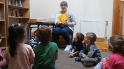 Międzynarodowy Dzień Książki dla Dzieci obchodzony jest 2 kwietnia w dniu urodzin baśniopisarza Hansa Christaina Andersena. Dzień ten ma na celu rozpowszechnianie książek dla dzieci oraz zachęcenie do czytania. Również ,, Krasnoludki” postanowiły uczcić ten dzień poprzez odwiedziny szkolnej biblioteki. Pani Ania opowiedziała nam o pracy w bibliotece, książkach oraz odpowiedziała na pytania dzieci związane z książkami. Nie mogło zabraknąć również przeczytania opowiadania o psotliwym rodzeństwie. Na koniec wypożyczyliśmy książeczki, które już w naszej sali będą czytały nam nasze panie.