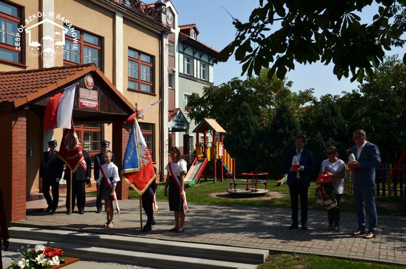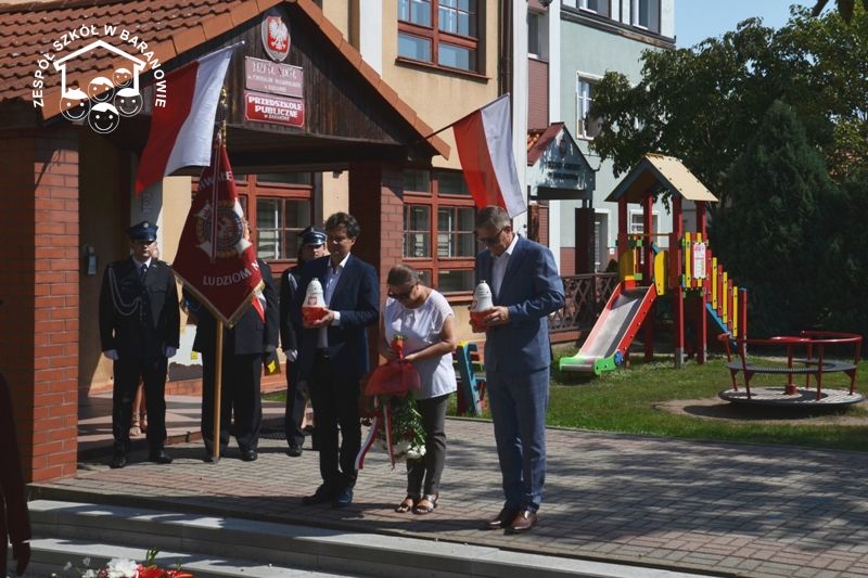 1 września dyrektor szkoły Sławomir Nowicki oraz wicedyrektor Ilona Walczak i nauczyciel Jacek Klyta, w obecności pocztu sztandarowego szkoły w składzie: Oliwia Stelmaszyk, Amelia Jarych i Kacper Rabiega, pośród innych delegacji, złożyli w baranowskim Rynku znicze i kwiaty pod pomnikiem bohaterów poległych oraz walczących za wolność ojczyzny. W 80. rocznicę wybuchu II wojny światowej, tym symbolicznym gestem włączyliśmy się w narodowe obchody tej tragicznej daty - militarnej agresji, która pochłonęła miliony niewinnych istnień i spowodowała wiele cierpień.