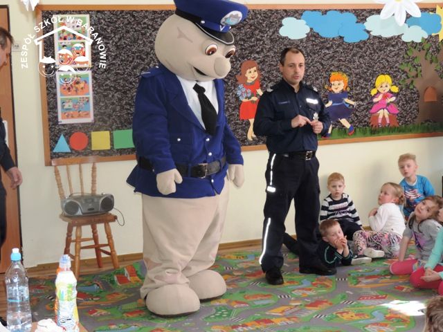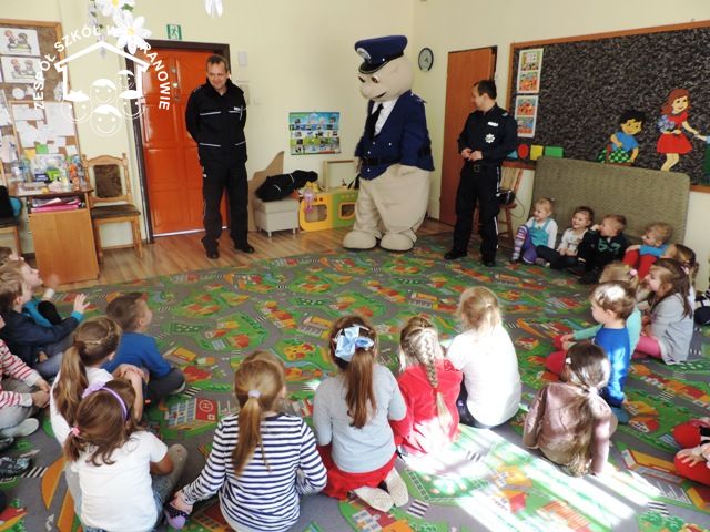 Dnia 18 marca 2015 r. w jednej z sal naszego przedszkola odbyło się niecodzienne spotkanie. W odwiedziny przybył do dzieci Sierżant Pyrek - maskotka z Komendy Wojewódzkiej Policji w Poznaniu wraz z policjantami z Komendy Powiatowej Policji w Kępnie, aby porozmawiać o zasadach bezpieczeństwa jakimi powinny kierować się dzieci na drodze i w podróży samochodem. Dzieci natomiast chętnie zadawały pytania dotyczące pracy policjantów oraz z zaciekawieniem oglądały ich wyposażenie.