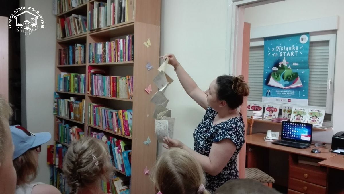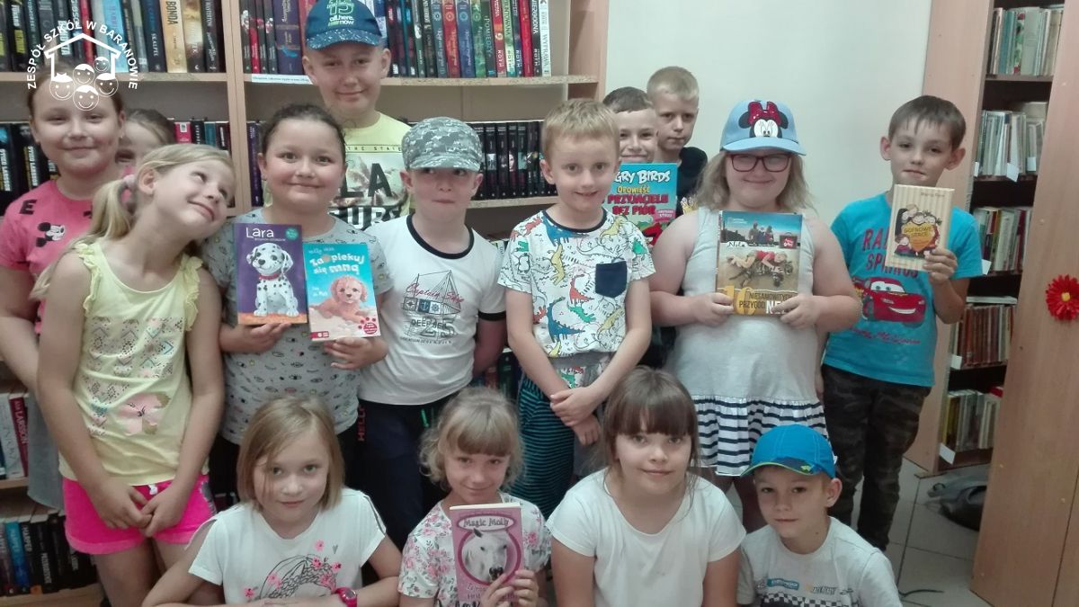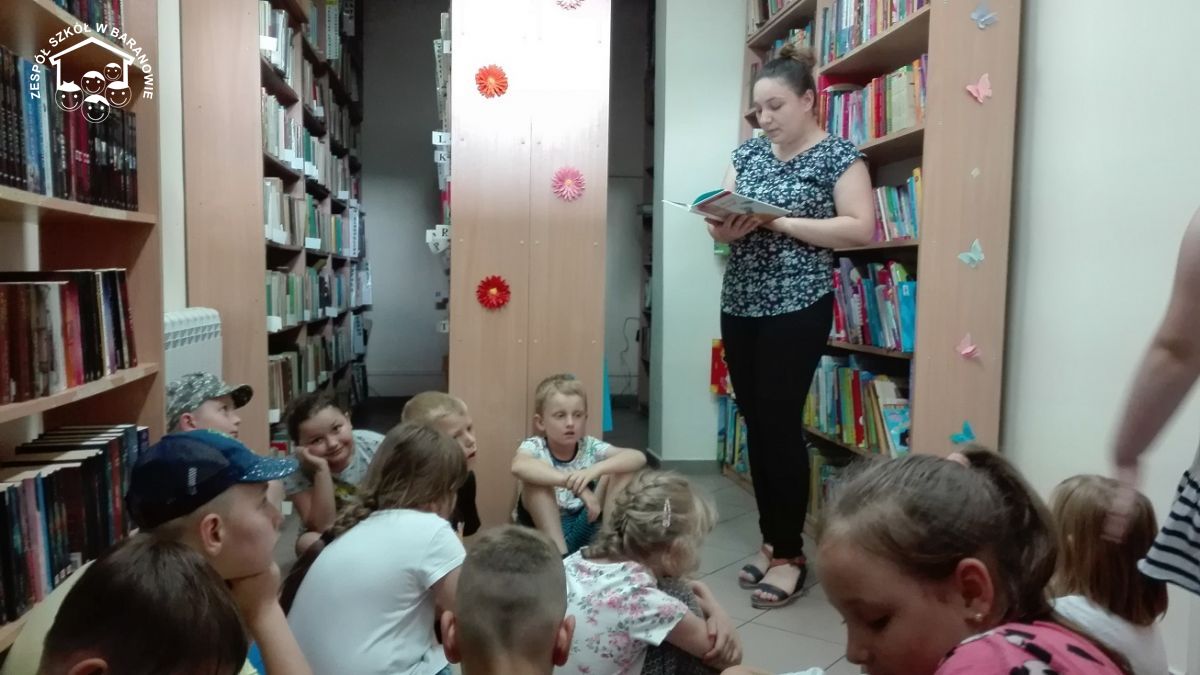 W piątek 14 czerwca uczniowie klasy I wraz z opiekunką szkolnej biblioteki, panią Anną Peksą, wybrali się do Gminnej Biblioteki Publicznej im. Feliksa hrabiego Wężyka w Baranowie. Dla prawie wszystkich była to pierwsza wizyta w tej bibliotece. Przemiła pani bibliotekarka zapoznała dzieci z zasadami korzystania z biblioteki oraz z pracą bibliotekarza. Każdy miał również okazję przejrzeć oferowane książeczki. Dużym zainteresowaniem dzieci cieszyły się bajki o zwierzątkach. Zwieńczeniem spotkania była krótka bajeczka. Pani bibliotekarka przeczytała pierwszoklasistom fragmenty książeczki Grzegorza Kasdepke "Z piaskownicy w świat", o wakacyjnych podróżach do Brazylii i Włoch.