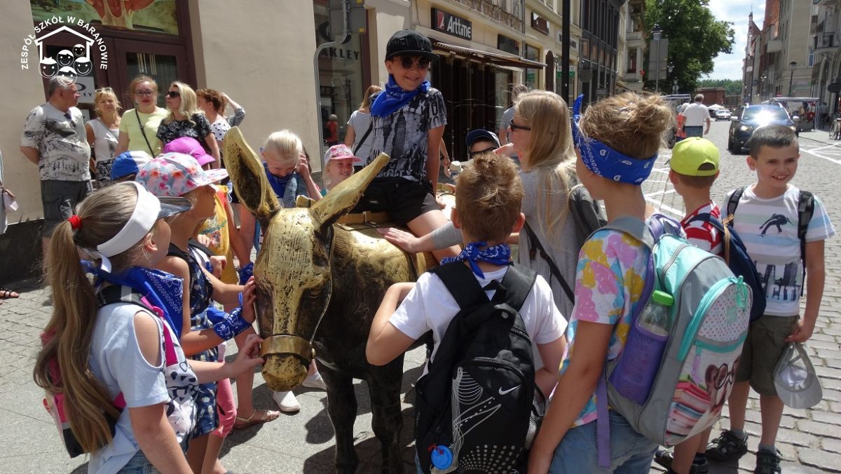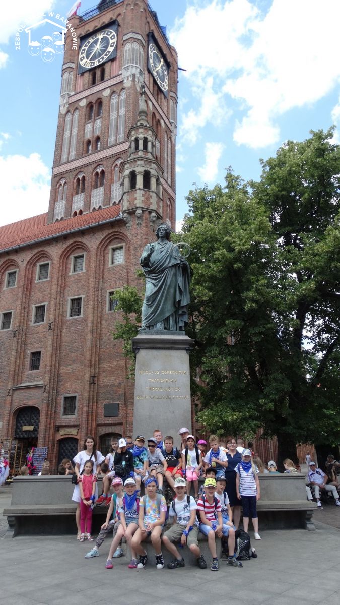 W poniedziałek 17 czerwca klasa druga udała się na wycieczkę do Torunia. Na miejscu czekała pani przewodnik, która oprowadziła nas po Starym Mieście. Każdy miał okazję przekonać się, czy średniowieczna baszta miejska, zwana Krzywą Wieżą, naprawdę jest pochylona. Widzieliśmy również dom Mikołaja Kopernika oraz miejsce, gdzie był ochrzczony. Nie mogło też zabraknąć pamiątkowych zdjęć przy jego pomniku. Dużym zaciekawieniem cieszyła się legenda o Flisaku, który wyprowadził żaby z Torunia. Podobno żaby z brązu mają szczególną moc spełniania życzeń. Wystarczy tylko takowe pomyśleć i potrzeć grzbiet żaby. Co prawda, żadna z nich nie zamieniła się w księcia z bajki, ale warto było próbować.. Kolejnym punktem zwiedzania było Żywe Muzeum Piernika, gdzie w ramach warsztatów każdy własnoręcznie przygotował swój pamiątkowy piernik. Następnie wybraliśmy się w podróż po Układzie Słonecznym. Po wyjściu z Planetarium mieliśmy trochę czasu na zakup drobnych pamiątek. Pełni wrażeń ruszyliśmy w drogę powrotną.